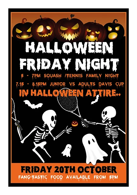The evening will start with junior coaching as normal but juniors are invited to spook their coaches with their terrifying costumes. Prizes are in the offering for the best dressed!